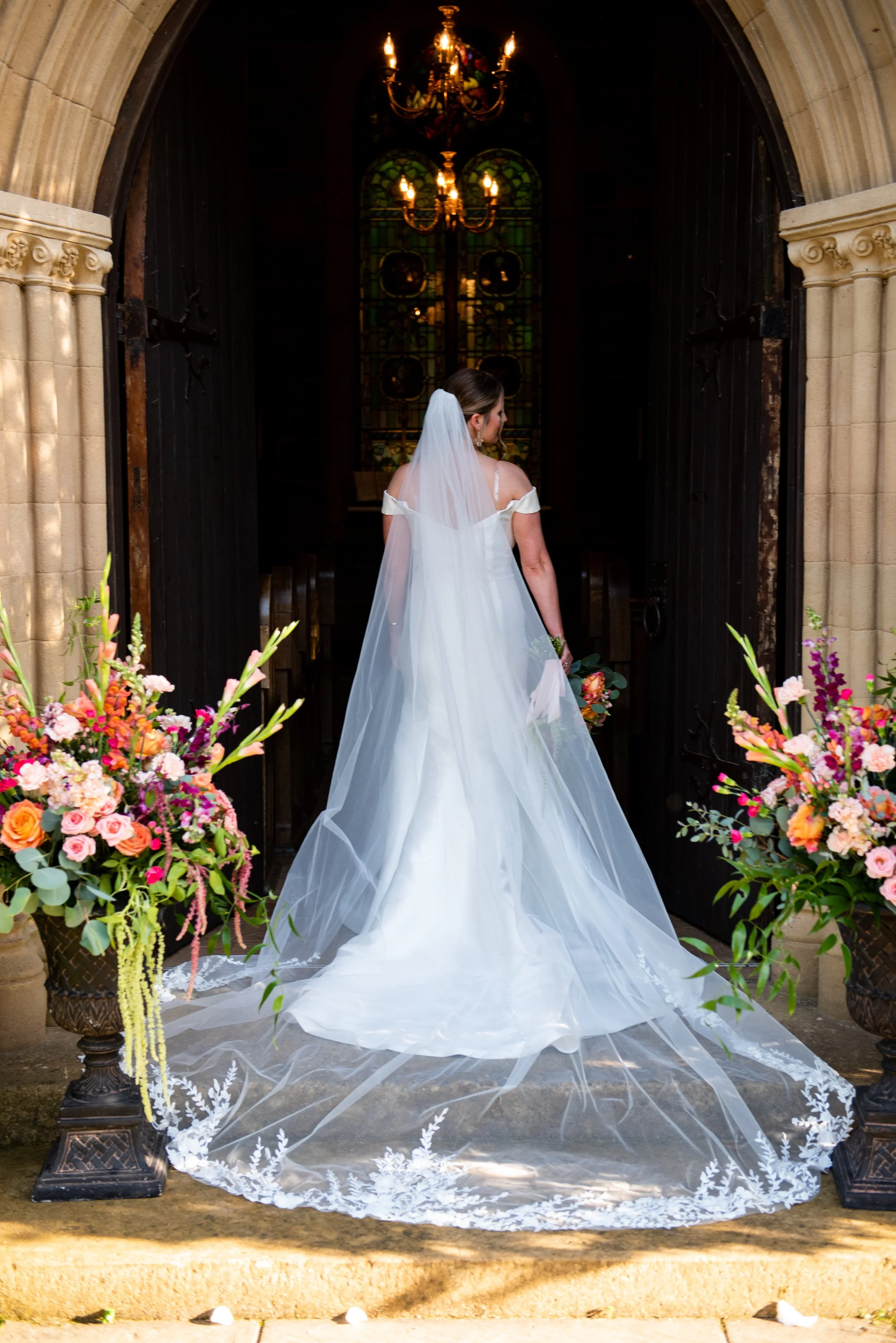 Peach, orange, hot pink, fuschia! These were the colors Chelsea came to me with to describe her wedding flowers. It is so fun when a bright wants to go bright and bold with her color palette. I knew her aesthetic was destined for cheerful elegance and we quickly picked the perfect flowers for her wedding at St Catherine’s at Bell Gable!